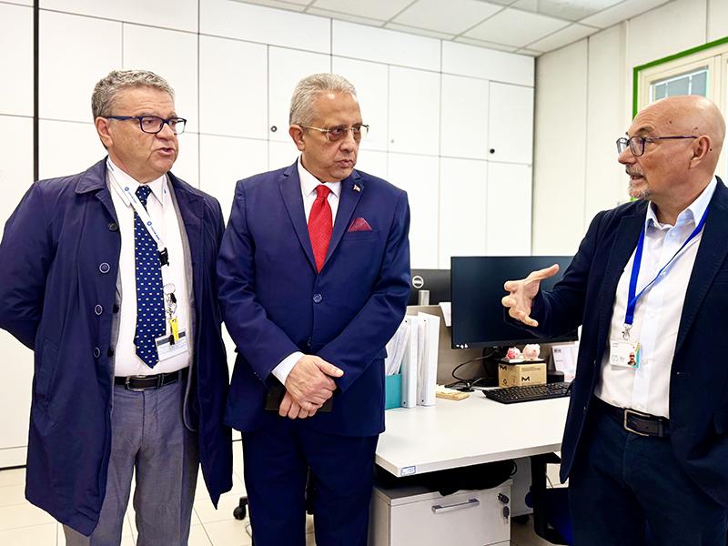 Nella giornata di oggi, 10 ottobre 2025, l’Istituto Zooprofilattico Sperimentale dell’Abruzzo e del Molise ha avuto l’onore di accogliere in visita istituzionale Sua Eccellenza, il Ministro della Salute della Repubblica Tunisina, Mustapha Ferjani, accompagnato dal Direttore Generale della Sanità in Tunisia dott. Abderrazak Bouzouita, e dalla Direttrice Generale della Cooperazione Internazionale della Tunisia, Dott.ssa Sina Haj Amor e da Monsieur Mohamed Hedi Chihaoui, Incaricato d’Affari, Ambasciata di Tunisi in Italia.