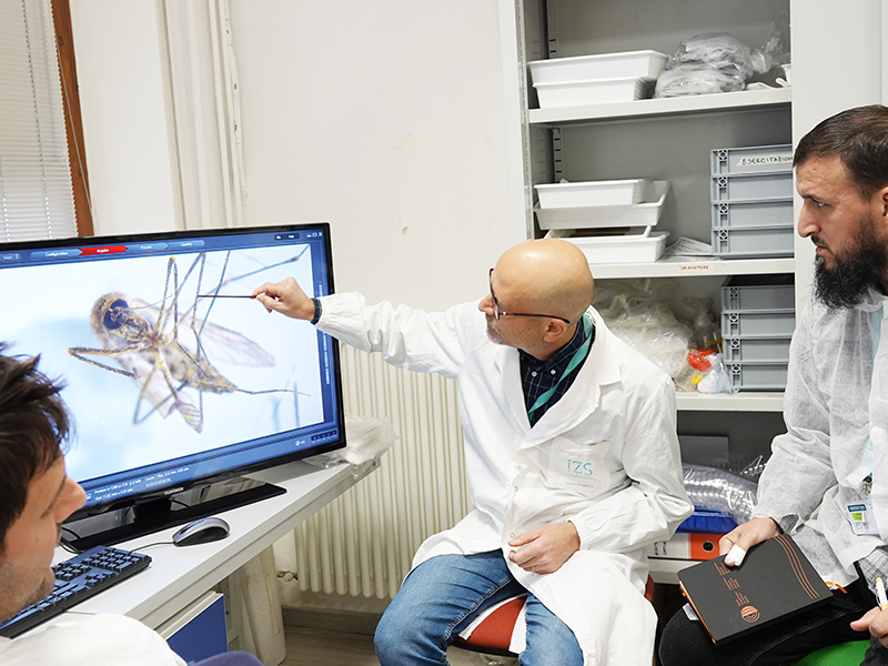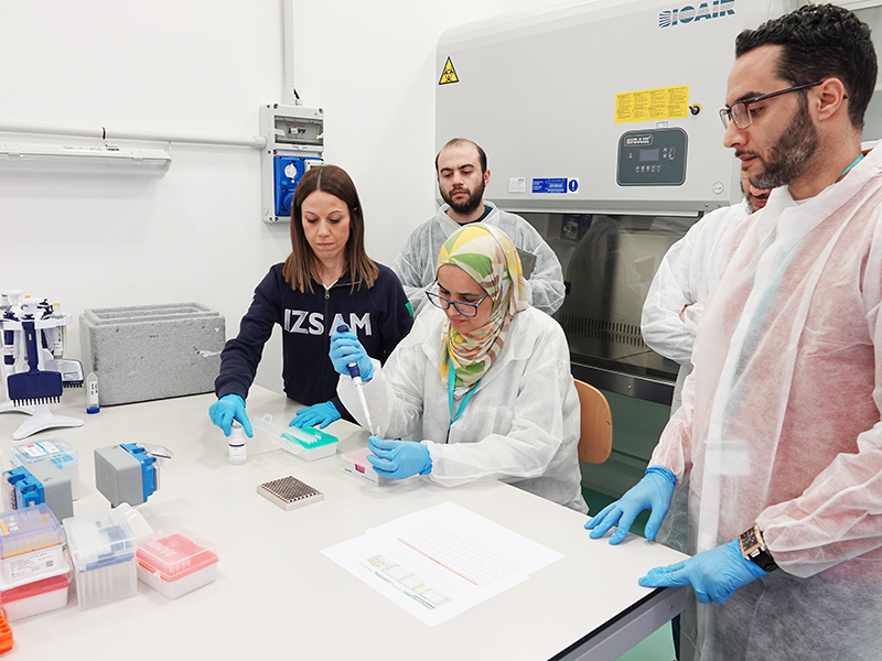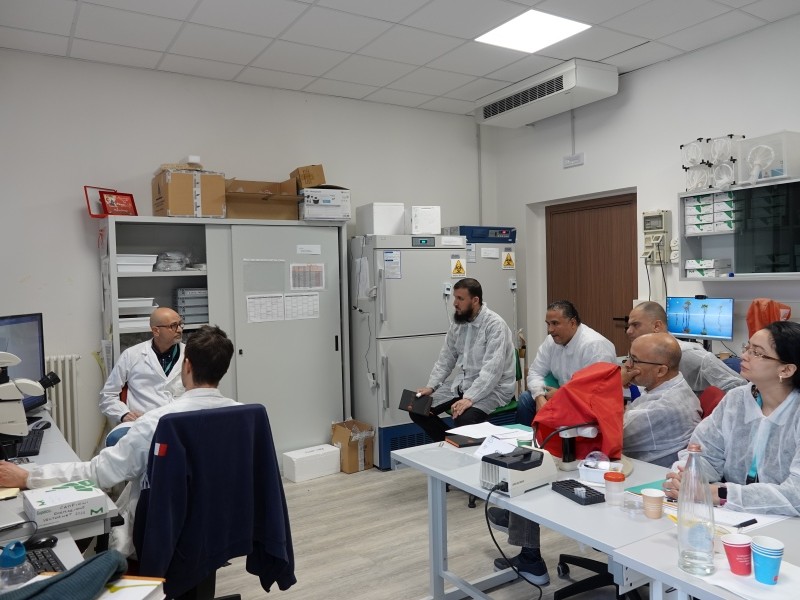 Le due visite presso le strutture dell’Istituto si sono svolte dal 10 al 14 novembre e dal 17 al 21 novembre 2025. Le sessioni teorico-pratiche hanno riguardato la diagnosi di arbovirus tramite metodiche molecolari e l’identificazione delle specie di zanzare mediterranee. In particolare, nel corso delle due settimane, sono state trattate le tecniche di diagnostica molecolare nei confronti dei virus responsabili della febbre del Nilo Occidentale (West Nile Fever - WNF), della dermatite nodulare contagiosa (Lumpy Skin Disease - LSD) e della febbre della Valle del Rift (Rift Valley Fever - RVF). Per quanto riguarda la formazione entomologica, sono state affrontate le metodiche per l’identificazione delle specie di zanzare, la loro tassonomia, morfologia e aspetti ecologici, nonché i metodi di raccolta di questi insetti in campo.