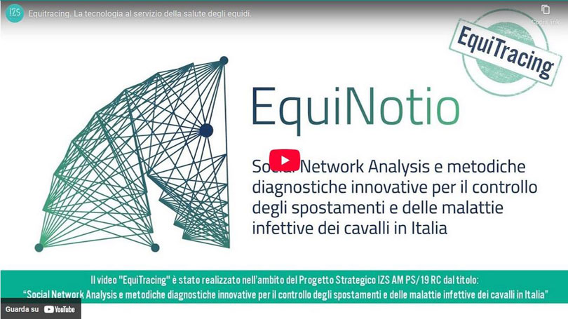 Il Video EquiTracing è stato realizzato nell'ambito del Progetto Strategico IZS AM PS/19 RC dal titolo Social Network Analysis e metodiche diagnostiche innovative per il controllo degli spostamenti e delle malattie infettive dei cavalli in Italia.